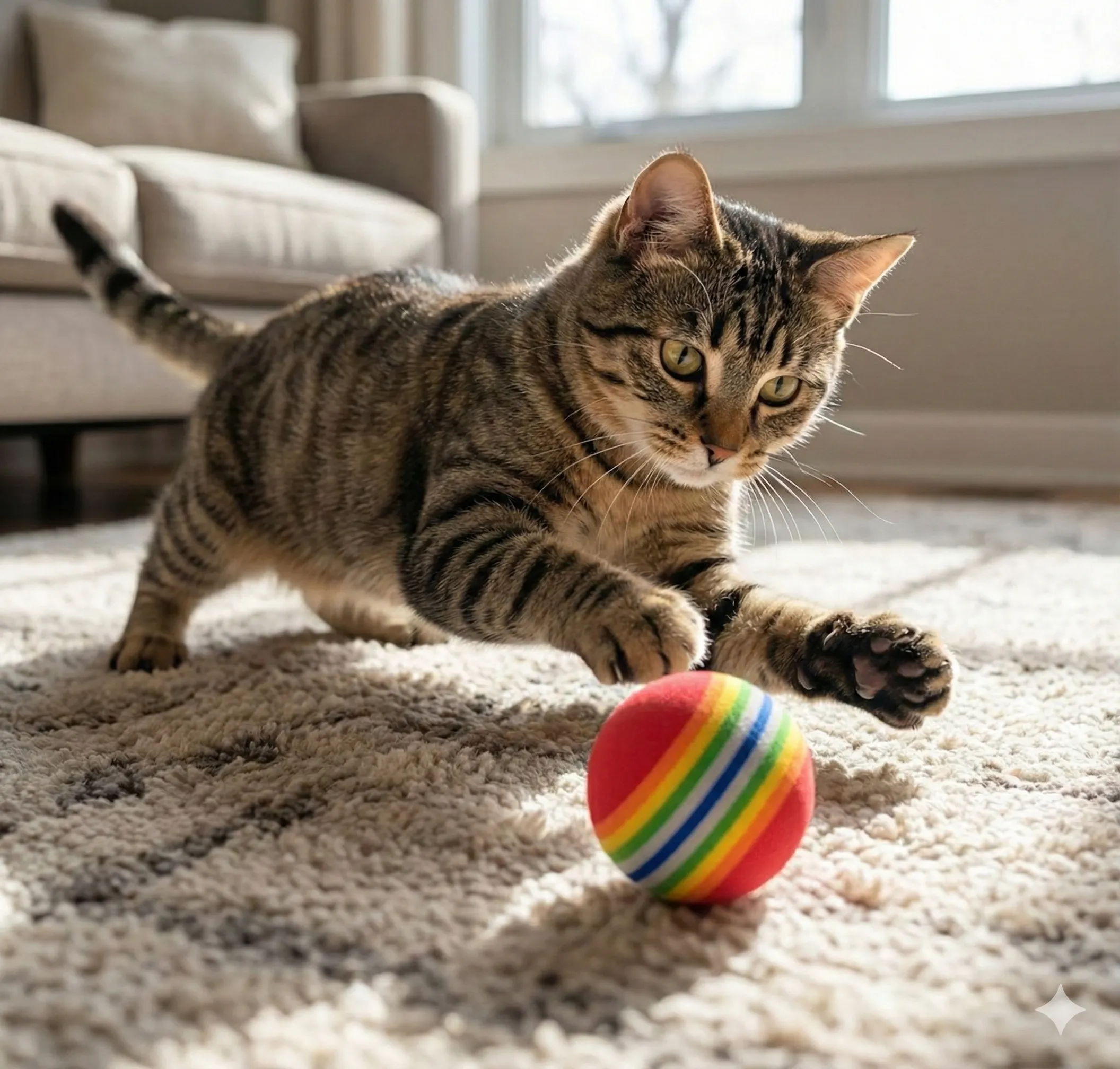 - Боротьба з нудьгою: активна гра допомагає коту вивільнити енергію, що знижує рівень стресу та покращує настрій.